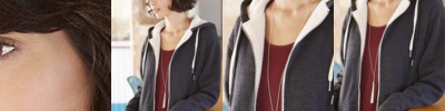- 7.5 oz./yd² (US) 12.5 oz./L yd (CA), 70/30 ring spun cotton/polyester blend French terry, 32 singles
